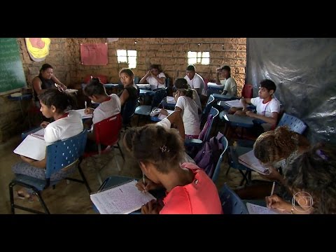 escolas sem a mínima estrutura. O teto é de palha, as paredes são de